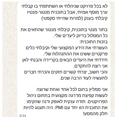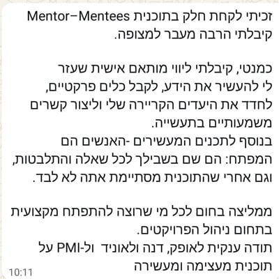 תוכנית PMI MENTORING IL היא יותר מסתם הכשרה